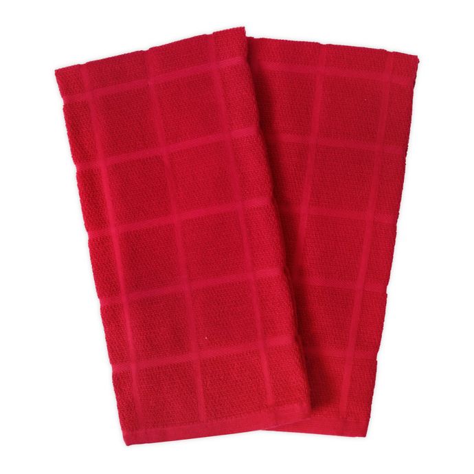 Kitchensmart Colors 2 Solid Windowpane Kitchen Towels In Red Set Of 2 Bed Bath Beyond