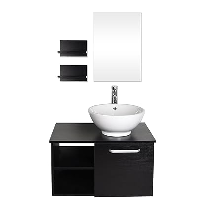 28 Inch Bathroom Vanity Modern Lavatory Wall Mounted Cabinet With Mirror Wood Black Fixture Ceramic Porcelain Sink Top With Chrome Faucet Pop Up Drain Amazon In Home Kitchen