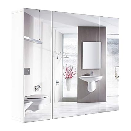 Tangkula Mirror Cabinet 36 Wide Wall Mount Bathroom With 3 Doors And Adjustable Shelf Wall Storage Cabinet Medicine Cabinet Amazon In Home Kitchen