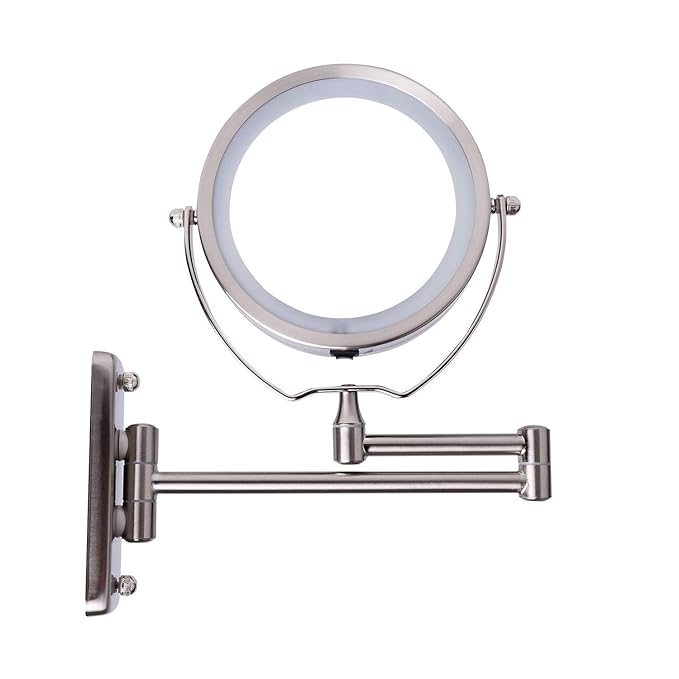 Amazon Com Wall Mount Vanity Mirror Brushed Nickel Led Lighted Wall Mount Makeup Mirror With 5x Magnification Bathroom Magnifying Mirror 8 Inch Double Sided 360 Swivel Extendable Usb Rechargeable